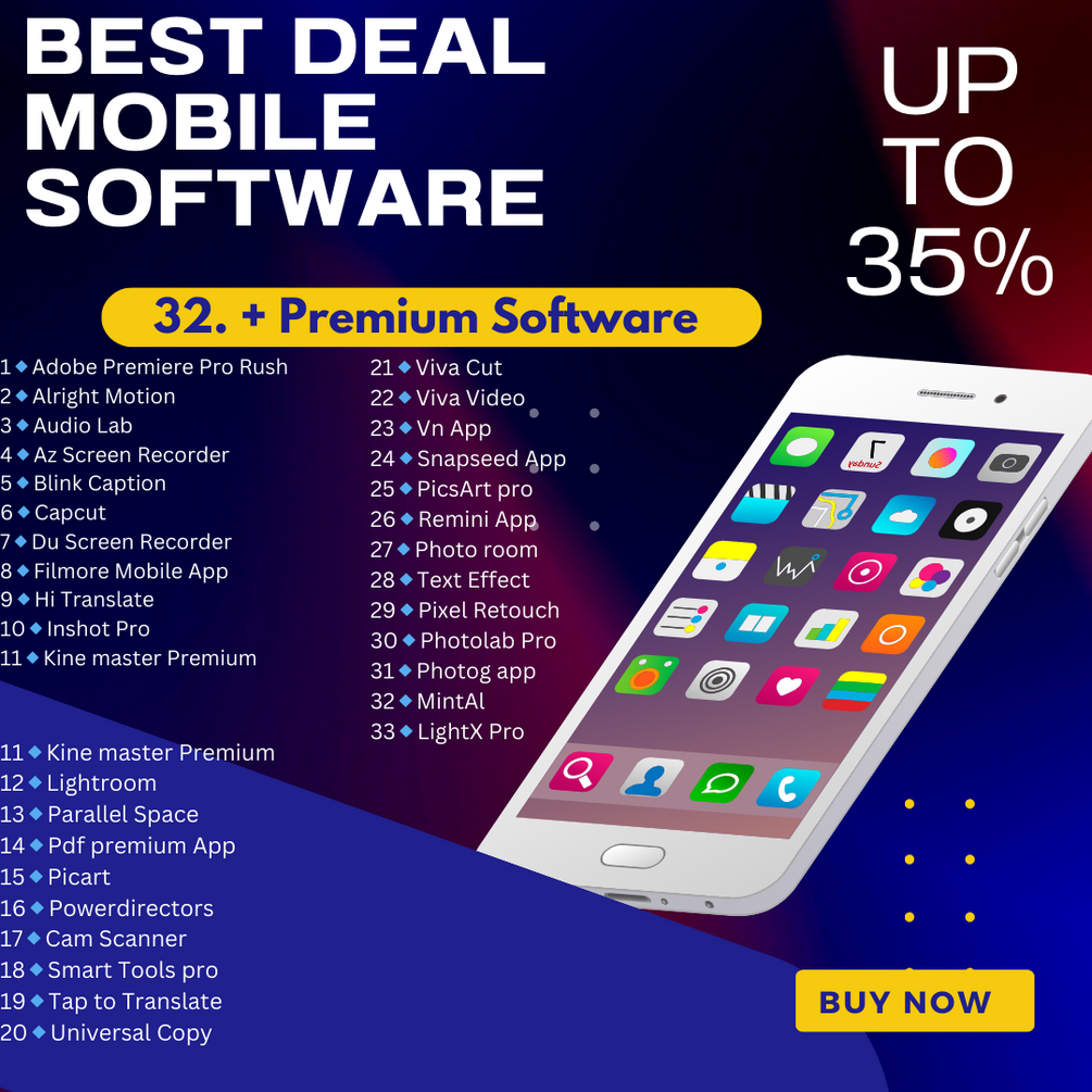 "Unlock the full potential of your mobile device with our premium software bundle! This collection includes 32 powerful apps to enhance your productivity, creativity, and entertainment.